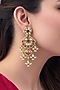 Featuring a pair of gold finish dangler earrings studded with synthetic stones, kundan polki and pearls, set in brass. It has a push back closure. Ideal for festive occasions, weddings, or elevating your elegant evening look.