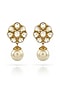 Gold Finish Kundan Polki & Pearl Floral Dangler Earrings