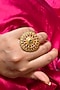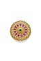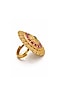 Featuring a gold finish adjustable ring studded with kundan polki and ruby stones, set in mixed metal. Ideal for festive occasions, weddings, or elevating your elegant evening look.