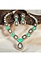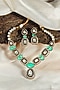 Gold Finish Mint Panna Stone & Kundan Polki Long Necklace Set