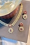 Featuring a gold finish temple choker necklace with multi-colored synthetic stone, set in mixed metal. It is paired with a matching pair of earrings. Perfect choice for festive celebrations or other Indian festivities.