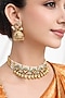 Featuring a gold finish choker necklace studded with pearls, set in mixed metal. It is paired with a matching pair of earrings. Ideal for weddings, festive celebrations or formal evening occasions.