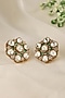 Featuring a pair of gold finish stud earrings studded with uncut kundan polki and emerald, set in mixed metal. Add a touch of sparkle to your ensemble, perfect for wedding ceremonies or festive celebrations.