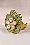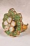 Matte Gold Finish Kundan Polki & Green Beaded Adjustable Ring