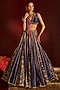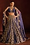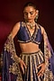 Featuring a blue lehenga in silk base with zardosi hand embroidery. It is paired with a silk embroidered sleeveless blouse and an organza dupatta. Accentuate the designer lehenga with kundan polki or silver jewellery, embellished heels and a potli bag for a bridal look, Perfect wear for your wedding, sangeet or engagement ceremony.