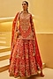 Featuring a burnt orange kurta in blended tussar base with zardosi embroidery. It is paired with a blended tussar lehenga and a georgette scalloped dupatta. Accentuate it with statement jewellery and heels for wedding ceremonies.