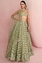 Sage Green Organza Zardosi Embroidered Lehenga Set