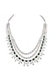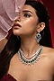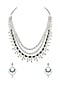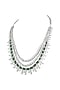 Featuring a white finish layered necklace studded with oval-cut emerald green stones and cubic zirconia, set in mixed metal. It is paired with a matching pair of chandbali earrings. Perfect for any evening soirees, weddings or festive occasions.