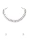 Featuring a white finish necklace studded with pearls and diamonds, set in mixed metal. It is paired with a matching pair of stud earrings. Perfect for any evening soirees, weddings or festive occasions.