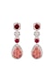 Featuring a white finish long necklace studded with tear-drop shaped rose quartz and ruby stones, set in mixed metal. It is paired with a matching pair of earrings. Perfect for any evening soirees, weddings or festive occasions.