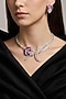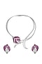 White Rhodium Finish Crystal Zircon & Fuchsia Stone Statement Necklace Set