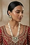 Featuring a white rhodium finish necklace studded with kundan polki and green stones, set in brass. It is paired with a matching pair of earrings. Add a touch of sparkle to your ensemble, perfect for wedding or engagement ceremony.