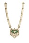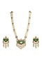 White Rhodium Finish Kundan Polki & Green Stone Necklace Set