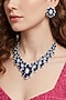 Featuring a white rhodium finish necklace studded with zircons and sapphire stones, set in brass. It is paired with a matching pair of earrings. Add a touch of sparkle to your ensemble, perfect for wedding or sangeet ceremony.