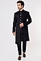 Featuring a black indowestern in a suede velvet base. It is paired with matching pants.