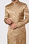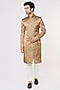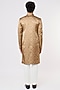Featuring a gold sherwani in rayon cotton and satin base. It is paired with contrasting white pants. Accentuate it with pair of mojaris for festive occasions or wedding?ceremonies.