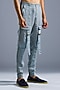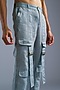 Featuring ice blue utility pants in organic linen base with pockets. Perfect for casual wear.