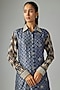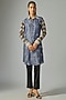 Blue Kora Silk Ajrakh Printed & Floral Embroidered Long Kurta Set