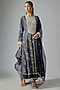 Featuring a black kurta in kora silk base with badla print and pleat detailing crystal embroidery. It is paired with pants, including an organza dupatta. Accentuate it with stud earrings and flat mules for an easy-going everyday look, perfect for festive occasions, pooja ceremonies, or family gatherings.