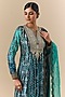 Featuring a blue kurta in kora silk base with leheriya print, including badla, french knot and zardosi embroidery. It is paired with pants an organza embroidered dupatta. Accentuate it with silver jewellery, heels and a clutch for festive occasions or sangeet ceremonies.