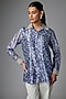 Featuring an indigo blue shirt in kora silk base with print and floral embroidery. Accentuate it with trousers, statement earrings and flats for casual outings or evening wear.