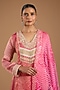 Featuring a magenta kalidar kurta in tissue organza base with printed and embroidery. It is paired with pants and an organza dupatta. Style this set with chandbali earrings, juttis and a clutch for weddings, festive celebrations or traditional family gatherings.