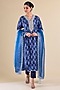 Navy Blue Kora Silk Printed & Embroidered Kurta Set