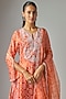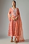 Featuring an orange kurta in kora silk base with ajrakh print and crystal tassels embroidery. It is paired with pants, including an organza printed and embroidered dupatta. Accentuate it with stud earrings and flat mules for an easy-going everyday look, perfect for festive occasions, pooja ceremonies, or family gatherings.