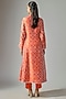 Orange Kora Silk Ajrakh Printed Kurta Set