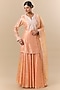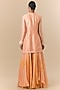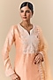 Featuring an orange kurta in kora silk base with block print, including floral, cutdana and zardosi embroidery. It is paired with printed skirt palazzo pants, including an organza printed and embroidered dupatta. Accentuate it with dangler earrings, heels and a clutch for festive occasions or sangeet ceremonies.