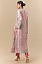 Featuring a peach and blue kurta in kora silk base with tie-dye print, badla and zardosi embroidery, including a v-neckline. It is paired with pants an organza embroidered dupatta. Accentuate it with silver jewellery, heels and a clutch for festive occasions or sangeet ceremonies.