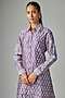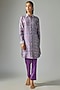 Featuring a purple long shirt kurta in kora silk base with ajrakh print and floral embroidery. It is paired with pants. Accentuate it with stud earrings and flat mules for an easy-going everyday look, perfect for festive occasions, pooja ceremonies, or family gatherings.