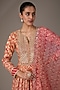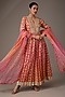 Featuring a red and orange kurta in chanderi banarasi base with a square neck, block print and zardosi hand embroidery. It is paired with pants and an organza printed dupatta. Accentuate with statement jewellery and heels for a festive occasion or pooja ceremony.