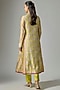 Yellow Kora Silk Ajrakh Printed & Embroidered Kalidar Kurta Set
