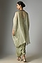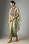 Featuring an aqua bluish kaftan in crushed tissue base with dori and thread work. It is paired with a cotton lycra inner and modal satin pants. Style it with statement earrings and block heels for a festive occasion, sangeet or family gathering.