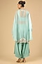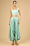 Featuring an aqua kaftan in cotton lycra base. It is paired with a bustier and pants. Accentuate with statement jewellery and heels for festive occasions or wedding ceremonies.