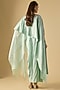 Featuring an aqua cape in organza base with resham and maal work. It is paired with a silk kaftan and a modal satin skirt. Accentuate it with statement earrings and heels for a complete look.