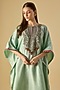 Featuring an aqua kaftan in silk base with dori work. It is paired with cotton satin pants. Accentuate it with dangler earrings and heels for festive occasions or wedding ceremonies.