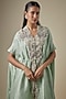Featuring an aqua kaftan in silk base with resham and maal work. It is paired with cotton satin pants. Accentuate it with statement jewellery and heels for festive occasions.