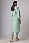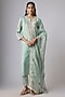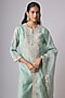 Featuring an aqua kurta in silk base with resham and maal work. It is paired with cotton satin pants and an organza dupatta. Style it with wedges, diamond earrings and a sleek bun. Ideal for a festive occasion, sangeet ceremony or intimate pooja ceremony.