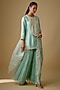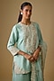 Featuring an aqua kurta in silk base with resham work. It is paired with sharara pants and an organza dupatta. Accentuate it with zircon jewellery and heels for a wedding or sangeet ceremony.