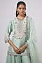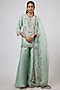 Featuring an aqua kurta in silk base with resham work. It is paired with sharara pants and an organza dupatta. Accentuate it with swarovski jewellery and heels for a wedding or sangeet ceremony.