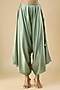 Featuring an aqua A-line kaftan in tissue base with thread work. It is paired with a cotton lycra bustier and cotton satin pants. Accentuate it with polki jewellery, a soft braided hairstyle and juttis for a timeless festive look.