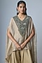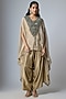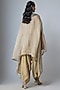 Featuring a beige kaftan in crushed tissue base. It is paired with cotton satin pants and a cotton lycra bustier. Accentuate it with stud earrings, a polti bag and juttis for festive occasions or cultural ceremonies.