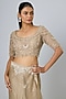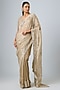 Featuring a beige saree in tissue base with dori work. It is paired with blouse having dori work. Accentuate it with statement earrings and heels for weddings or sangeet ceremonies.