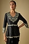 Featuring a black peplum in chanderi base with thread work. It is paired with a modal satin skirt. Accentuate it with zircon jewellery and heels for festive gatherings or sangeet ceremony.