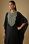 Featuring a black kaftan in silk base with thread work. It is paired with cotton satin pants. Accentuate it with zircon earrings and heels for festive occasions or pooja ceremony.