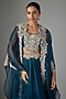Blue Organza Resham Work Cape Set