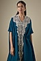 Featuring a blue kaftan in silk base with resham and maal work. It is paired with cotton satin pants. Accentuate it with statement jewellery and heels for festive occasions.
