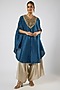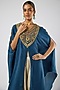 Blue Silk Thread Embroidered V-Neck Kaftan Set
